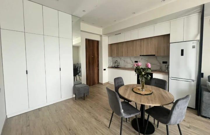 In the center, in a newly built building, a 2-room apartment is for sale. Euro-renovated, furnished, stone building,50 sq.m., 5/4 floor.