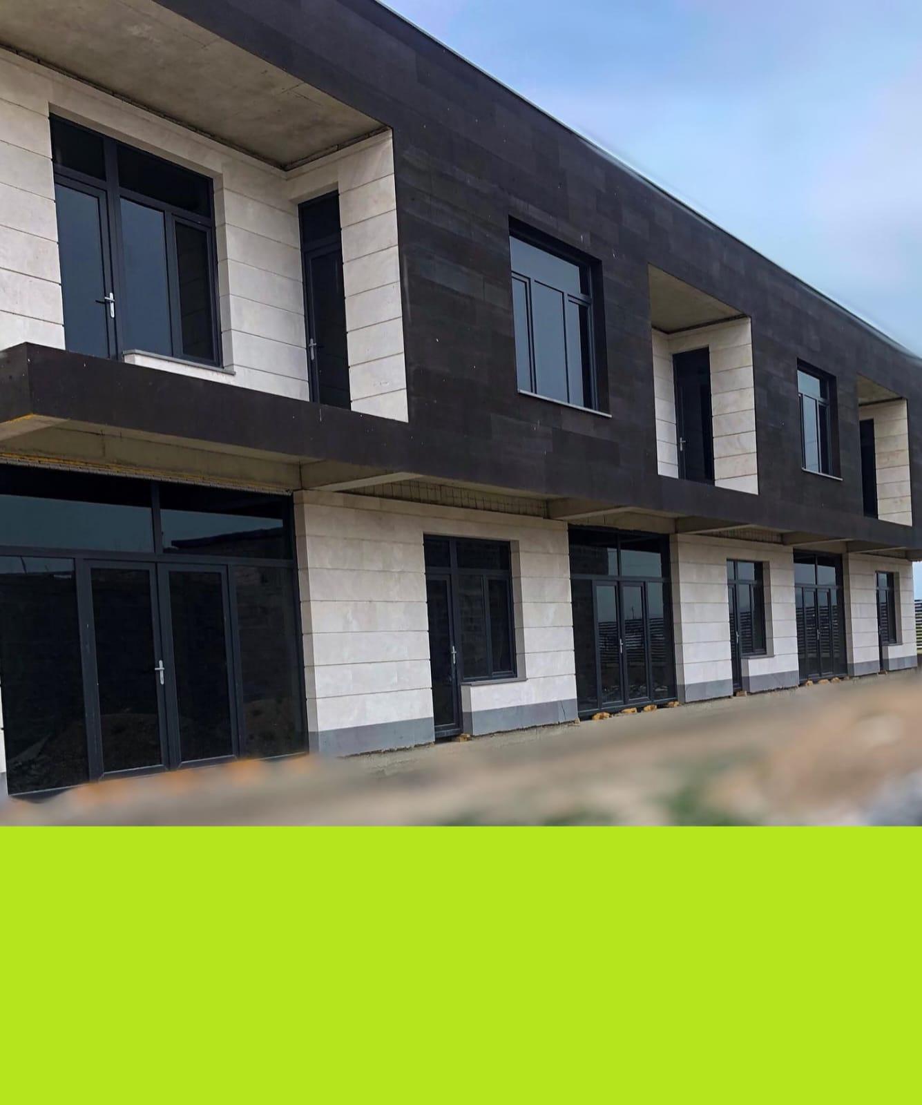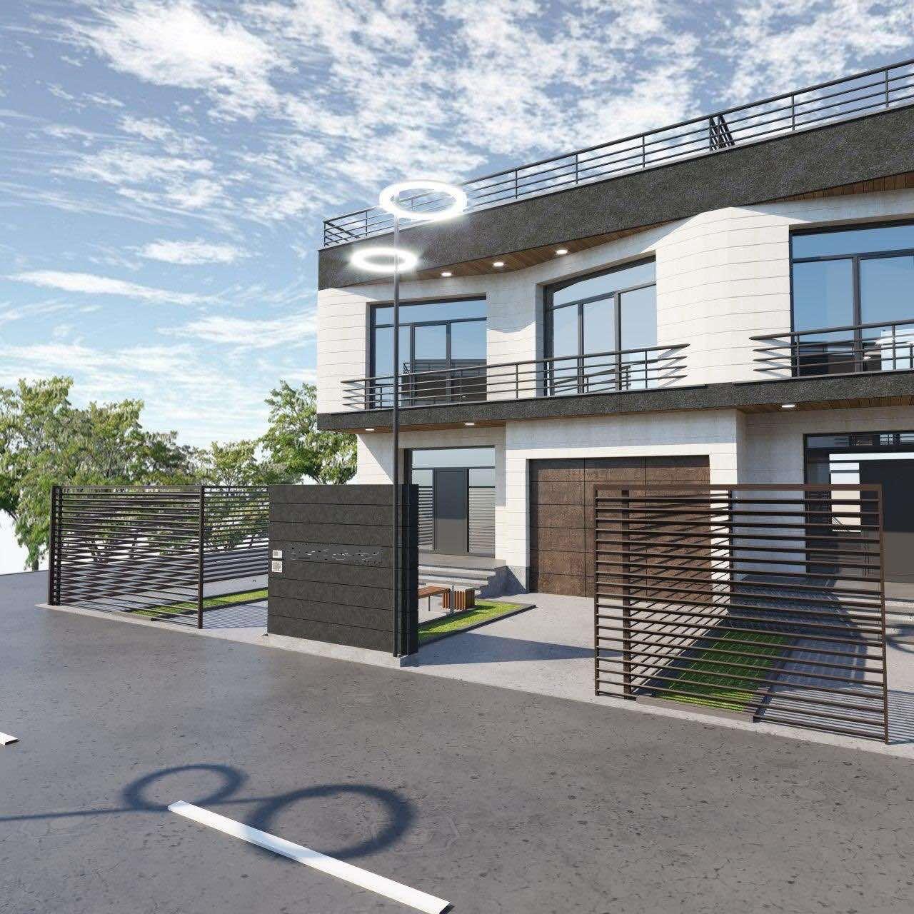 Slide (раздвижные ворота) prefabricated automatic metal gates High-quality cladding on both facades with a combination of travertine and black tuff, Flat monolithic roof, water-heat-insulated, also sound-insulated